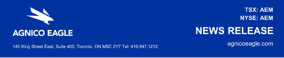 AGNICO EAGLE PROVIDES NOTICE OF RELEASE OF