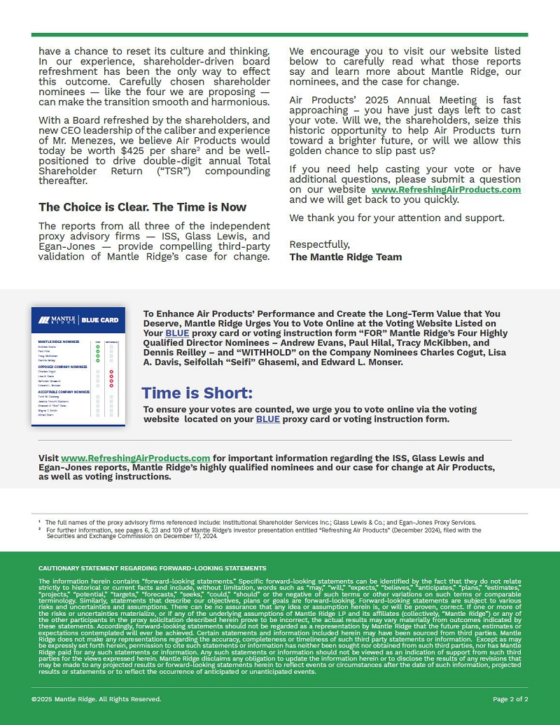 2 For further information, see pages 6, 23 and 109 of Mantle Ridge’s investor presentation entitled Refreshing Air Products” (December 2024), filed with the Securities and Exchange Commission on December 17, 2024.