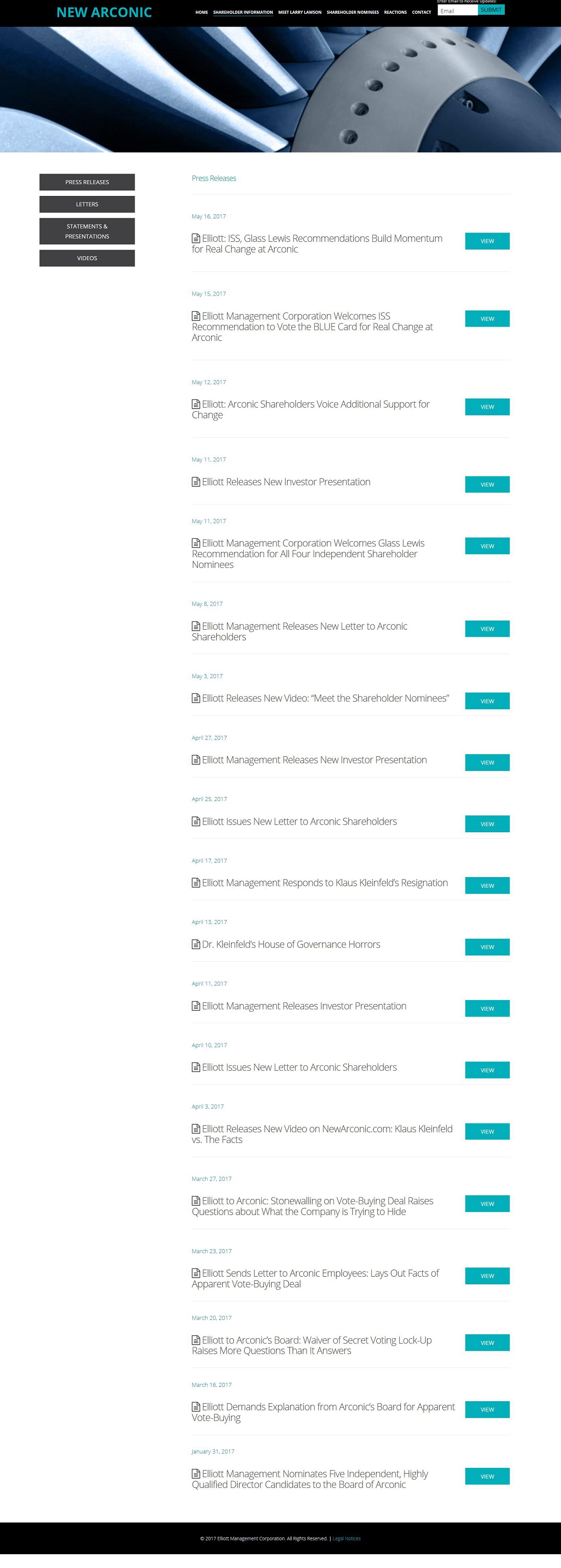 Item 2: On May 16, 2017, the following materials were posted by Elliott to www.NewArconic.com: