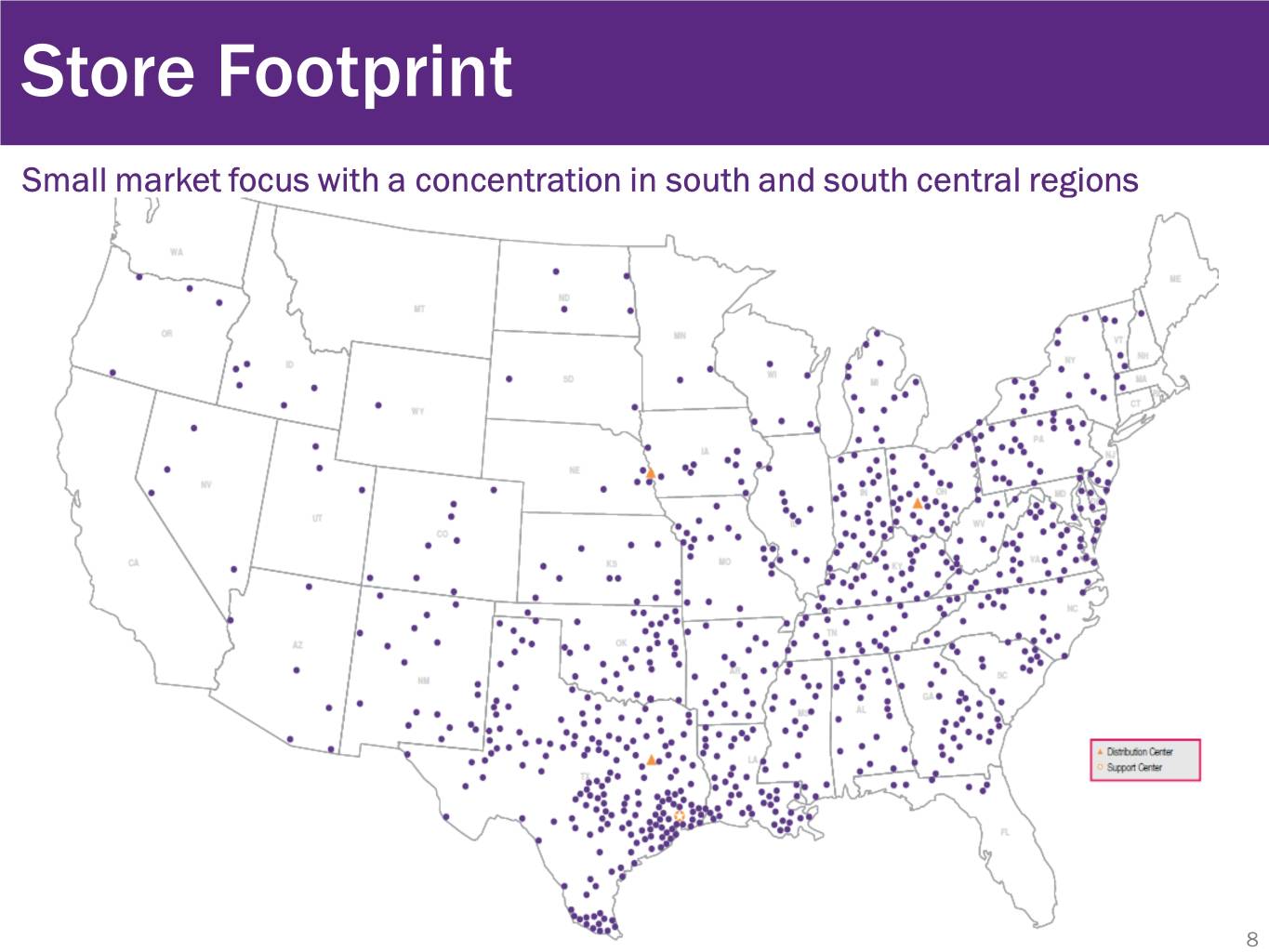 Store Footprint Small market focus with a concentration in south and south central regions 8