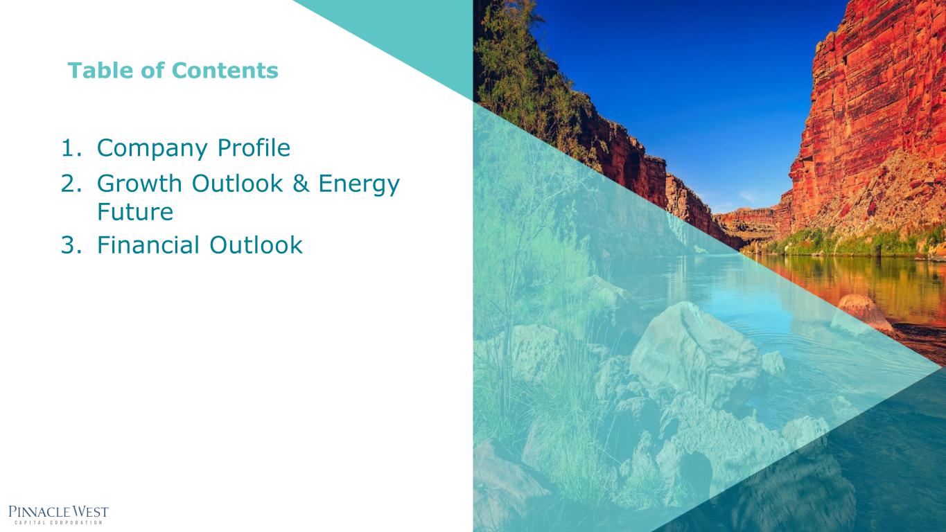 1. Company Profile 2. Growth Outlook & Energy Future 3. Financial Outlook Table of Contents