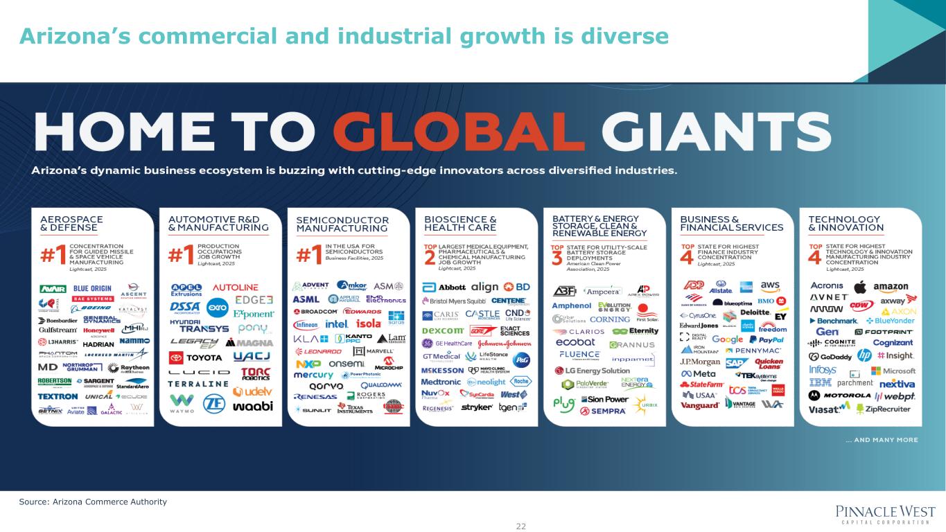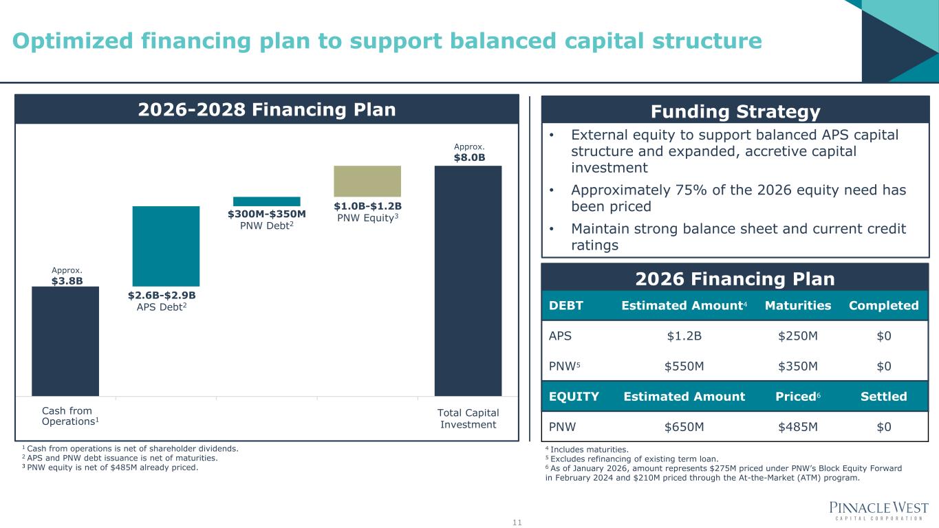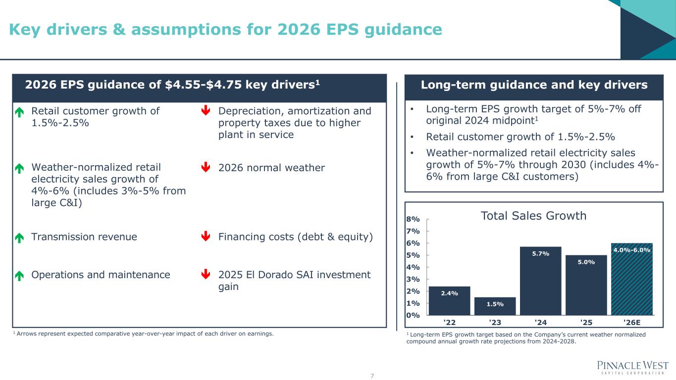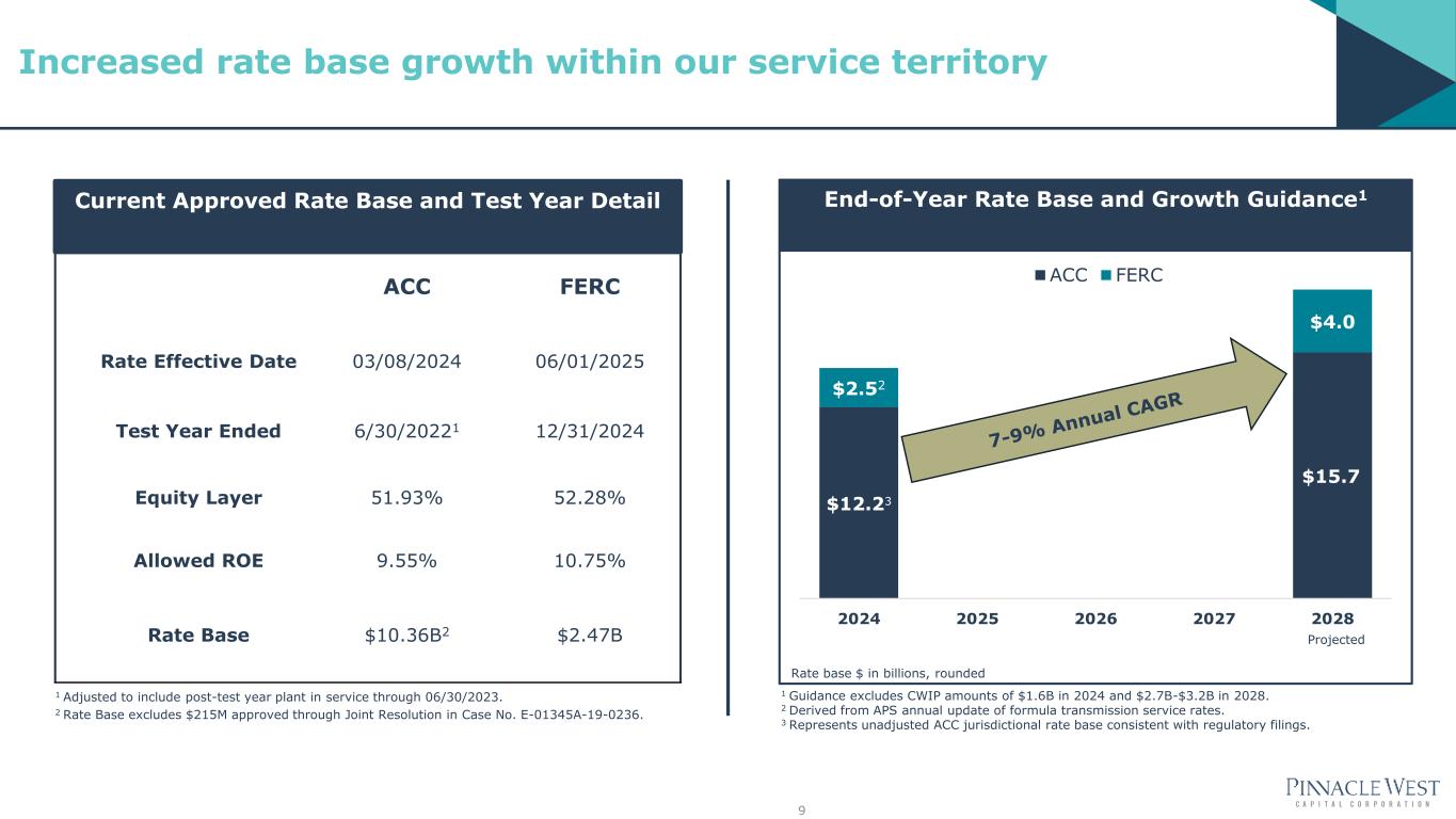 2 This presentation contains forward-looking statements based on current expectations, including statements regarding our earnings guidance and financial outlook and goals. These forward-looking statements are often identified by words such as “estimate,” “predict,” “may,” “believe,” “plan,” “expect,” “require,” “intend,” “assume,” “project,” "anticipate," "goal," "seek," "strategy," "likely," "should," "will," "could," and similar words. Because actual results may differ materially from expectations, we caution you not to place undue reliance on these statements. A number of factors could cause future results to differ materially from historical results, or from outcomes currently expected or sought by Pinnacle West or APS. These factors include, but are not limited to: our ability to achieve timely and adequate rate recovery of our costs through our regulated rates and adjustor recovery mechanisms, including returns on and of debt and equity capital investment; the impacts of federal, state, and local laws, judicial decisions, statutes, regulations, and FERC, NRC, EPA, ACC, and other agency requirements, including as they are changed by legislative and regulatory action as well as executive orders, such as those relating to tax, environment, energy, nuclear plants, and deregulation of the retail electric market; our operation of Palo Verde is subject to substantial regulatory oversight and potentially significant liabilities and capital expenditures; we are subject to numerous environmental laws and changes to existing laws, or new laws, may increase our costs and impact our business; the potential effects of climate change on our electric system, including as a result of weather extremes, such as prolonged drought and high temperature variations in the area where APS conducts its business, as well as the impacts of policy and regulatory changes introduced to address climate change; co-owners of our jointly owned generation and transmission facilities may have unaligned goals; the willingness or ability of counterparties, participants, and landowners to meet contractual or other obligations or extend the rights for continued generation and transmission operations; deregulation of the electric industry and other factors, such as large customers developing large, utility scale generation to serve their energy needs, may result in increased competition; variations in demand for electricity, including those due to weather, seasonality (including large increases in ambient temperatures), the general economy or social conditions, customer and sales growth (or decline), data center growth (or lack thereof), including to support the AI industry, the effects of energy conservation measures and DG, and technological advancements; wildfires, including those arising as a result of climate change, extreme weather events, or the expansion of the wildland urban interface; generation, transmission, and distribution facilities and system operating costs, conditions, performance, and outages; our ability and efforts to meet current and anticipated future needs for generation and transmission and distribution facilities in our region at reliable levels, including factors affecting our ability to acquire and develop new resources to serve this load as well as difficulties in accurately forecasting load growth, particularly from high load energy users; availability of fuel and water supplies as well as the volatility and costs of fuel and purchased power; the direct or indirect effect on our facilities or business from cybersecurity threats or intrusions, data security breaches, terrorist attack, physical attack, severe storms, or other catastrophic events, such as fires, explosions, pandemic health events, or similar occurrences; risks inherent in the operation of nuclear facilities, including spent fuel disposal uncertainty; the development of new technologies and the impact they have on the retail and wholesale electricity market and the impacts of our adoption or failure to adopt such technologies; the availability and retention of qualified personnel and the need to negotiate collective bargaining agreements with union employees; the cost of debt, including increased cost as a result of rising interest rates, and equity capital and our ability to access capital markets when required as well as the impacts a credit rating downgrade would have on us; the investment performance of the assets of our nuclear decommissioning trust, captive insurance cell, coal mine reclamation escrow, pension, and other postretirement benefit plans, and the resulting impact on future funding requirements; Pinnacle West’s cash flow depends on the performance of APS and its ability to make dividends and distributions; potential shortfalls in insurance coverage; Pinnacle West’s ability to meet its debt service obligation could be adversely affected because its debt securities are structurally subordinated to the debt securities and obligations of its subsidiaries; the liquidity of wholesale power markets and the use of derivative contracts in our business; policy changes in Arizona or other states through ballot initiatives or referenda may increase our cost or operations or affect our business plans; general economic conditions, such as tariffs, inflation, and other supply chain constraints, as well as uncertainties associated with the current and future economic environment and conditions in Arizona; and disruptions in financial markets could adversely affect our cost of and access to credit and capital markets. These and other factors are discussed in the most recent Pinnacle West/APS Form 10-K along with other public filings with the Securities and Exchange Commission, which you should review carefully before placing any reliance on our financial statements, disclosures or earnings outlook. Neither Pinnacle West nor APS assumes any obligation to update these statements, even if o