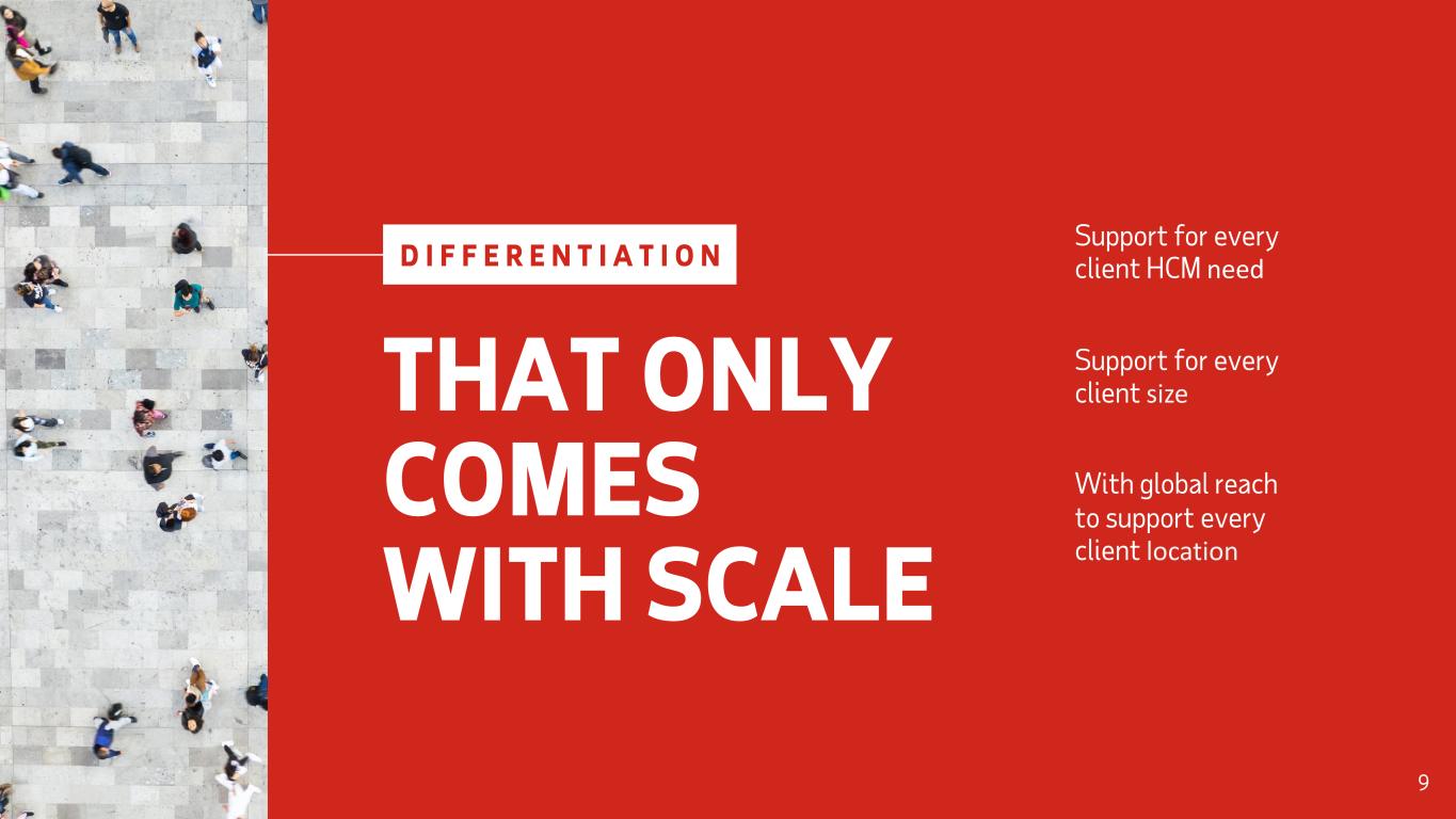 Support for every client HCM need THAT ONLY COMES WITH SCALE D I F F E R E N T I A T I O N Support for every client size With global reach to support every client location 9