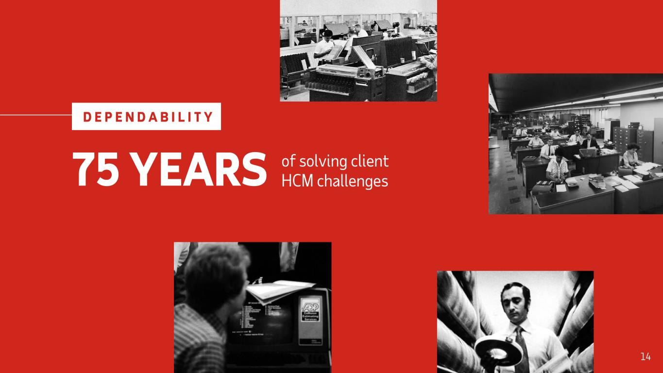 OUR CLIENTS FACE BIG CHALLENGES Demographic Shifts Rising Healthcare Costs Shrinking HR Teams Global Workforces Remote Work Instant and Streamlined Complex Regulations D E P E N D A B I L I T Y 75 YEARS of solving client HCM challenges 14