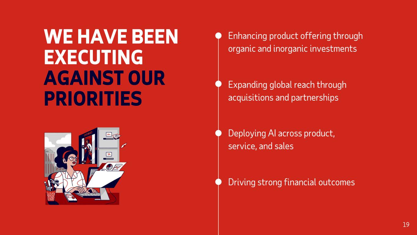 WE HAVE BEEN EXECUTING AGAINST OUR PRIORITIES Enhancing product offering through organic and inorganic investments Expanding global reach through acquisitions and partnerships Deploying AI across product, service, and sales Driving strong financial outcomes 19