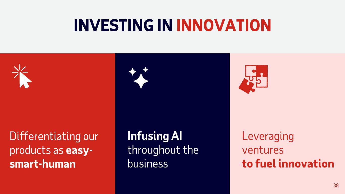 INVESTING IN INNOVATION Differentiating our products as easy- smart-human Infusing AI throughout the business Leveraging ventures to fuel innovation 38