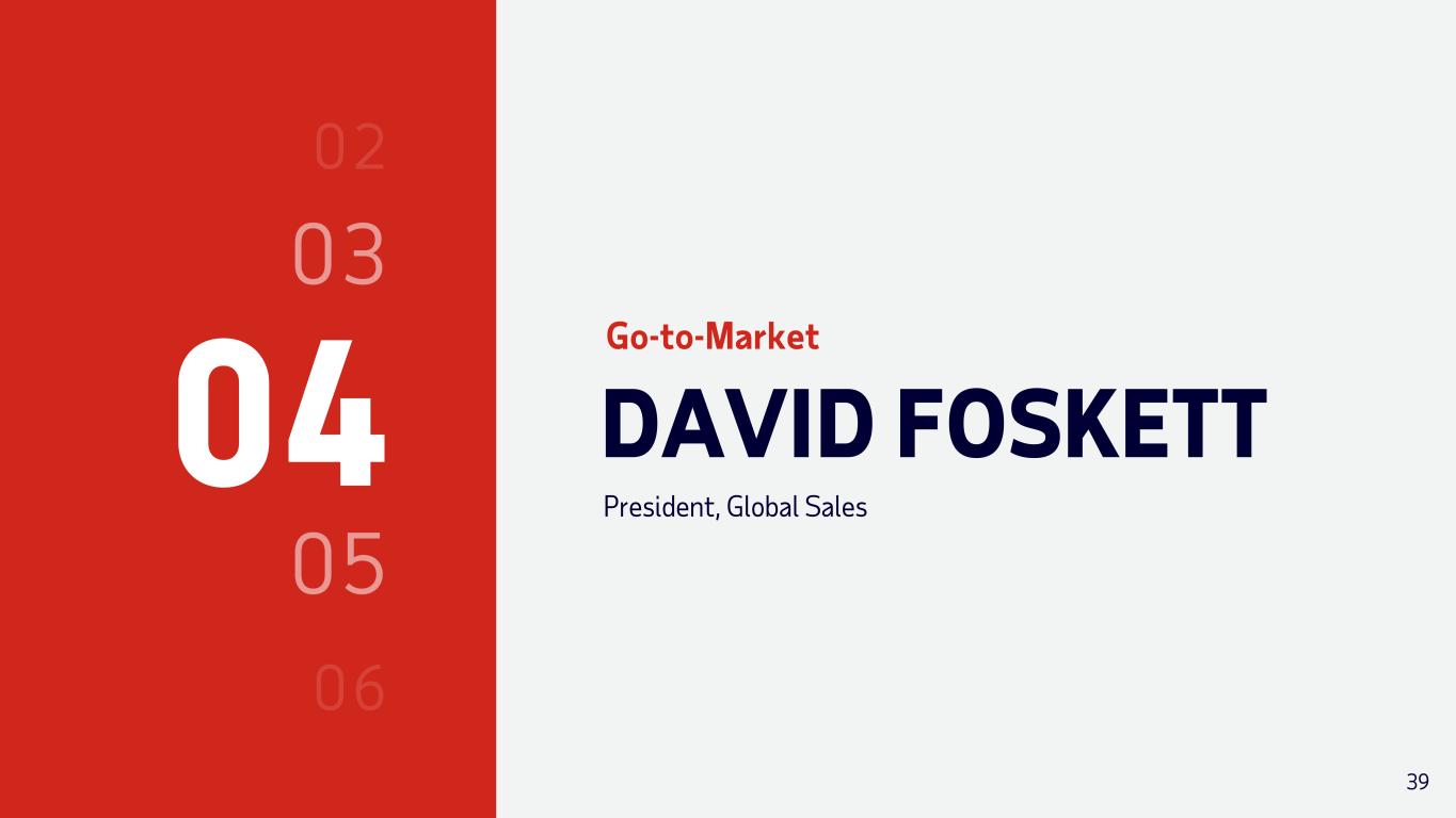04 DAVID FOSKETT President, Global Sales Go-to-Market 39