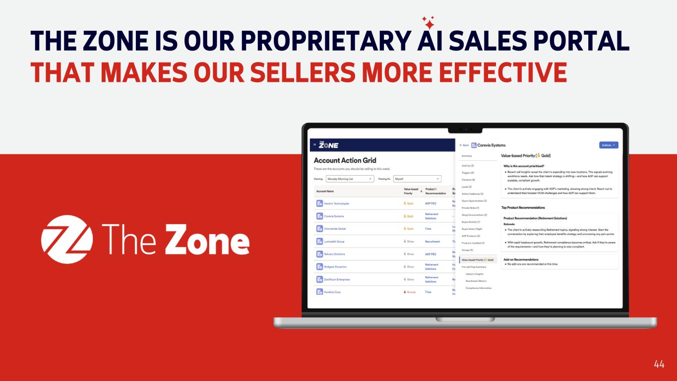 THE ZONE IS OUR PROPRIETARY AI SALES PORTAL THAT MAKES OUR SELLERS MORE EFFECTIVE 44