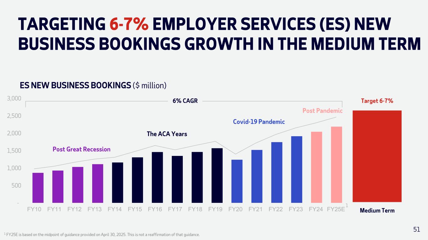 - 500 1,000 1,500 2,000 2,500 3,000 TARGETING 6-7% EMPLOYER SERVICES (ES) NEW BUSINESS BOOKINGS GROWTH IN THE MEDIUM TERM 1 FY25E is based on the midpoint of guidance provided on April 30, 2025. This is not a reaffirmation of that guidance. 51 Target 6-7% Medium Term ES NEW BUSINESS BOOKINGS ($ million) Post Great Recession The ACA Years Covid-19 Pandemic Post Pandemic 6% CAGR 1