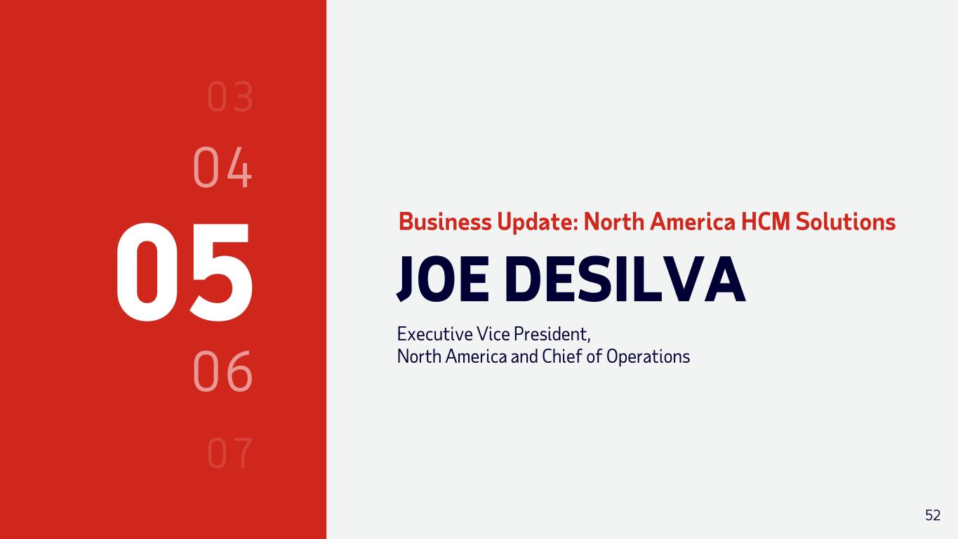 05 JOE DESILVA Executive Vice President, North America and Chief of Operations Business Update: North America HCM Solutions 52