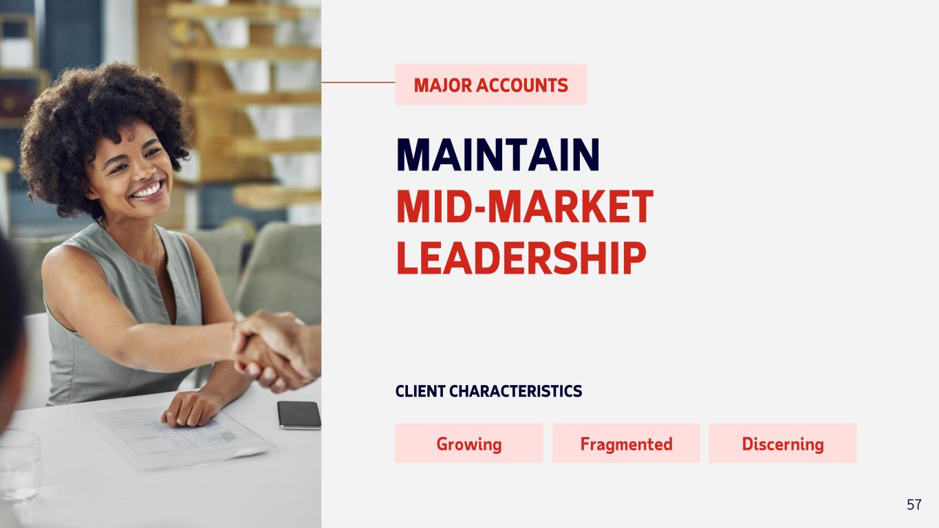 MAJOR ACCOUNTS MAINTAIN MID-MARKET LEADERSHIP Growing Fragmented Discerning CLIENT CHARACTERISTICS 57