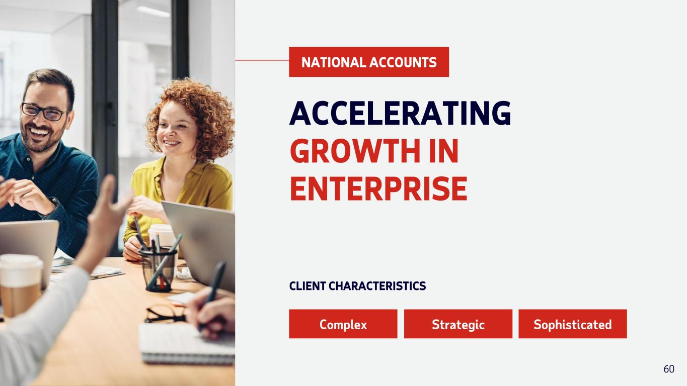 NATIONAL ACCOUNTS ACCELERATING GROWTH IN ENTERPRISE Complex Strategic Sophisticated CLIENT CHARACTERISTICS 60