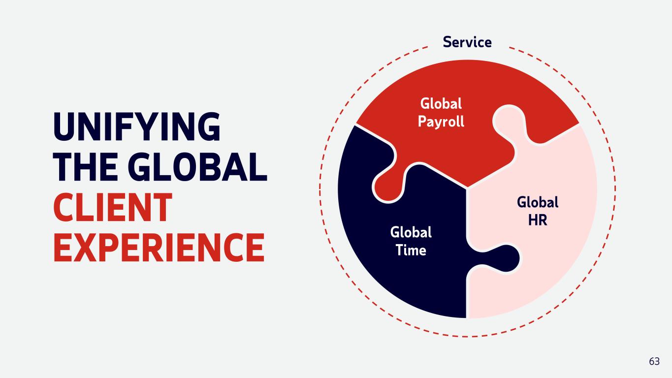 UNIFYING THE GLOBAL CLIENT EXPERIENCE Service Global Payroll Global Time Global HR 63