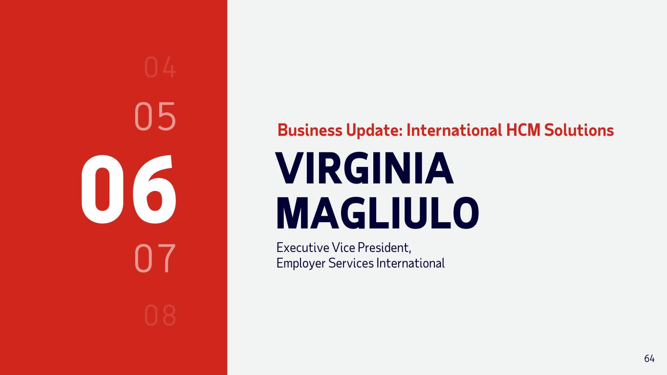 06 VIRGINIA MAGLIULO Executive Vice President, Employer Services International Business Update: International HCM Solutions 64