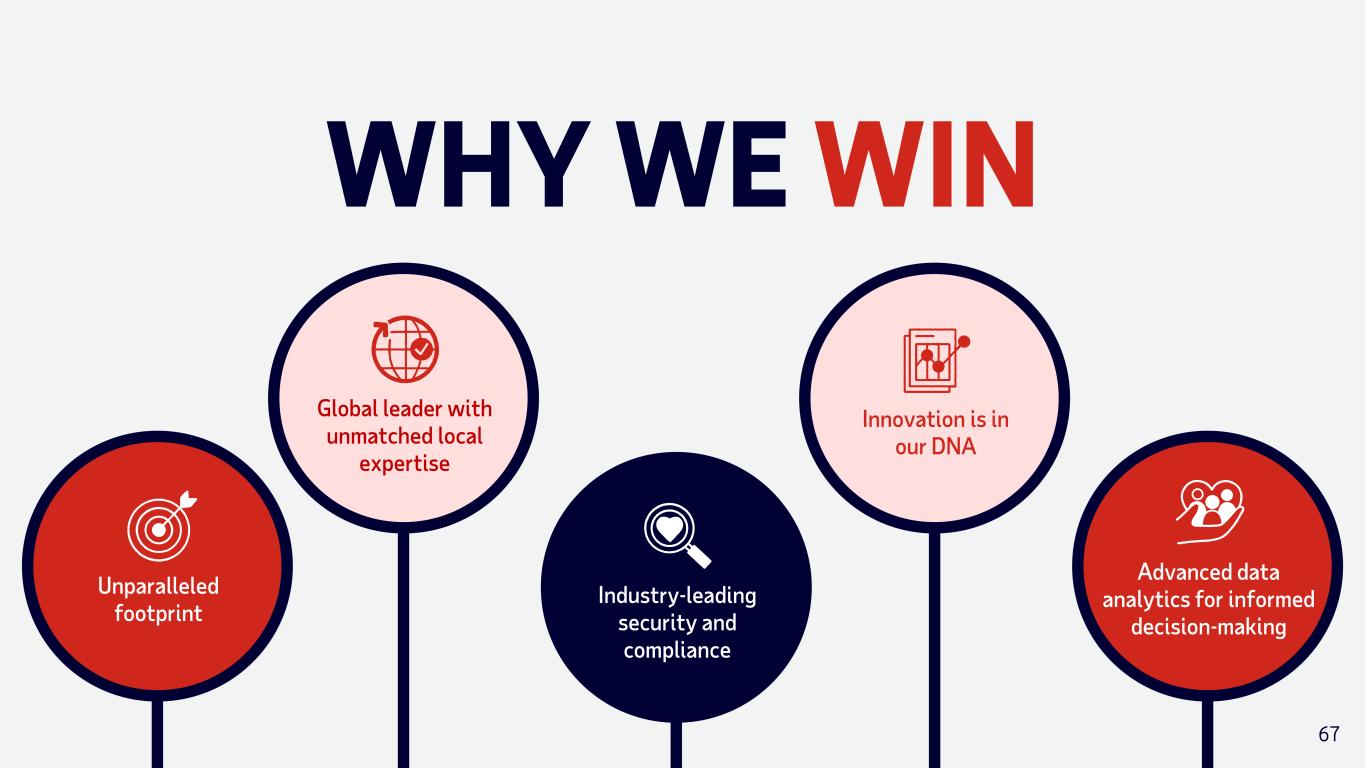 WHY WE WIN Innovation is in our DNA Advanced data analytics for informed decision-making Global leader with unmatched local expertise Industry-leading security and compliance Unparalleled footprint 67
