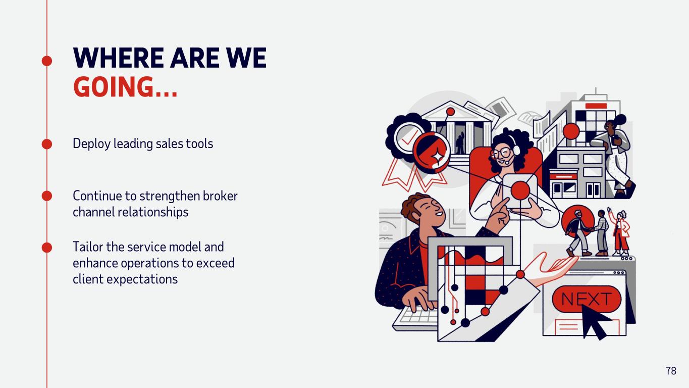 Tailor the service model and enhance operations to exceed client expectations Deploy leading sales tools WHERE ARE WE GOING… Continue to strengthen broker channel relationships 78