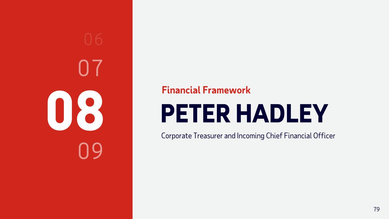 08 PETER HADLEY Corporate Treasurer and Incoming Chief Financial Officer Financial Framework 79