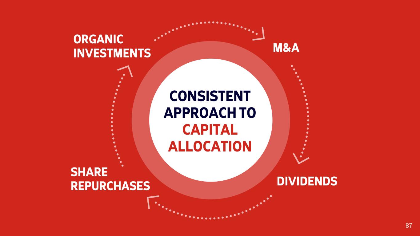 CONSISTENT APPROACH TO CAPITAL ALLOCATION SHARE REPURCHASES M&A ORGANIC INVESTMENTS DIVIDENDS 87