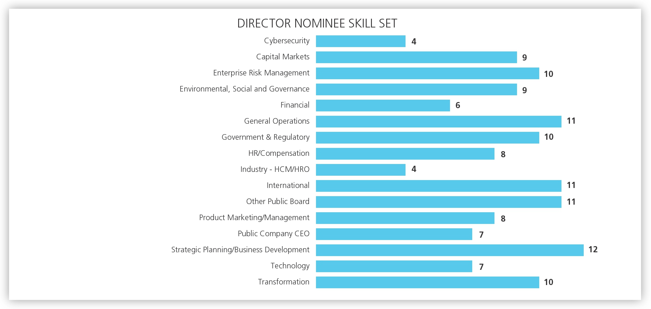 A more detailed matrix of relevant skills by individual director is set forth on page 9.