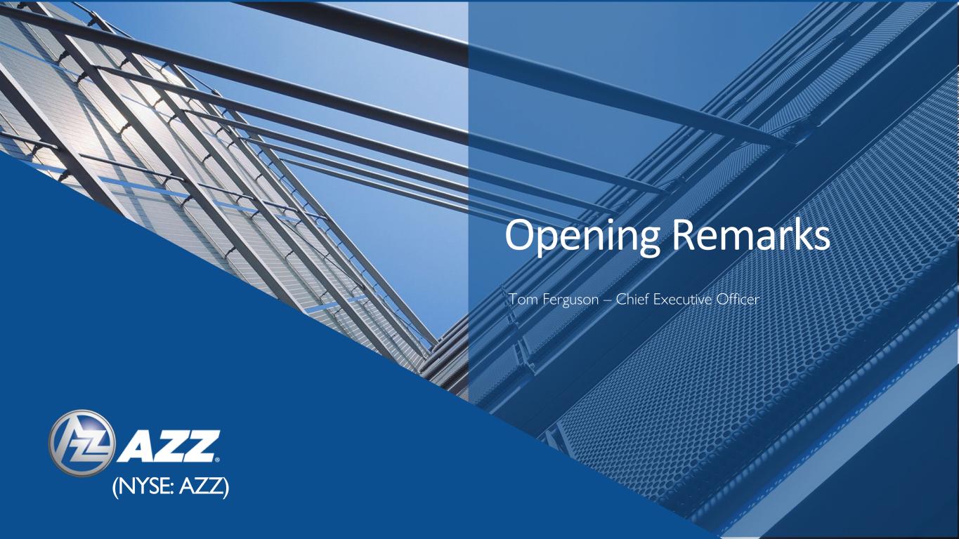Opening Remarks Tom Ferguson – Chief Executive Officer (NYSE: AZZ)