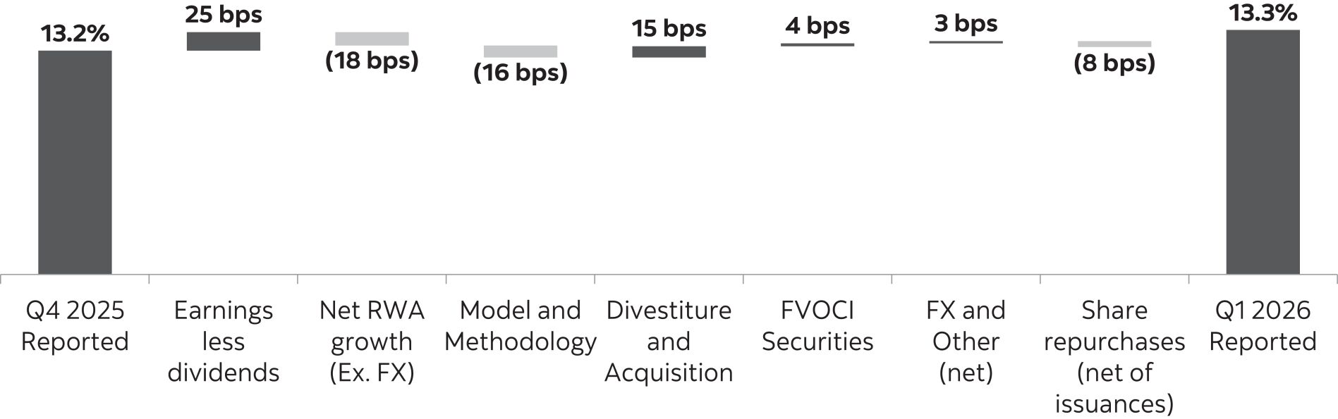 | 13 | Analysis of risk-weighted assets (RWA) by risk type, business, and market risk RWAs. | |