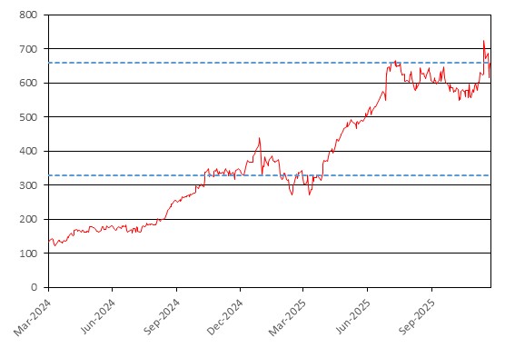 $658.28, which is equal to the closing price of the underlying stock on the pricing date |