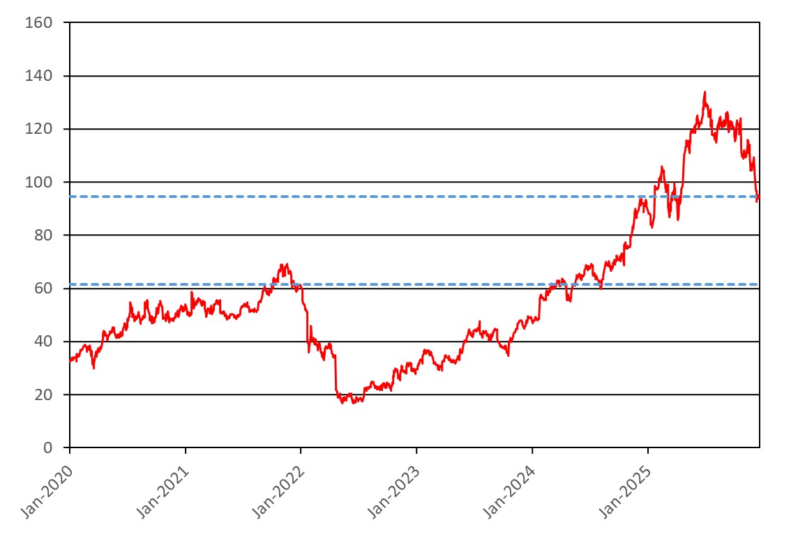 $94.39, which is equal to the closing price of the underlying stock on the pricing date |