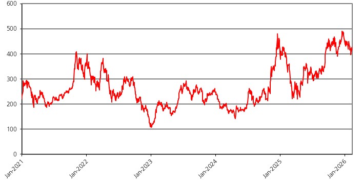 We obtained the information regarding the historical performance of the Reference Asset in the graph below from Bloomberg, without independent review or verification. The graph below illustrates the performance of the Reference Asset from January 1, 2021 through February 11, 2026.