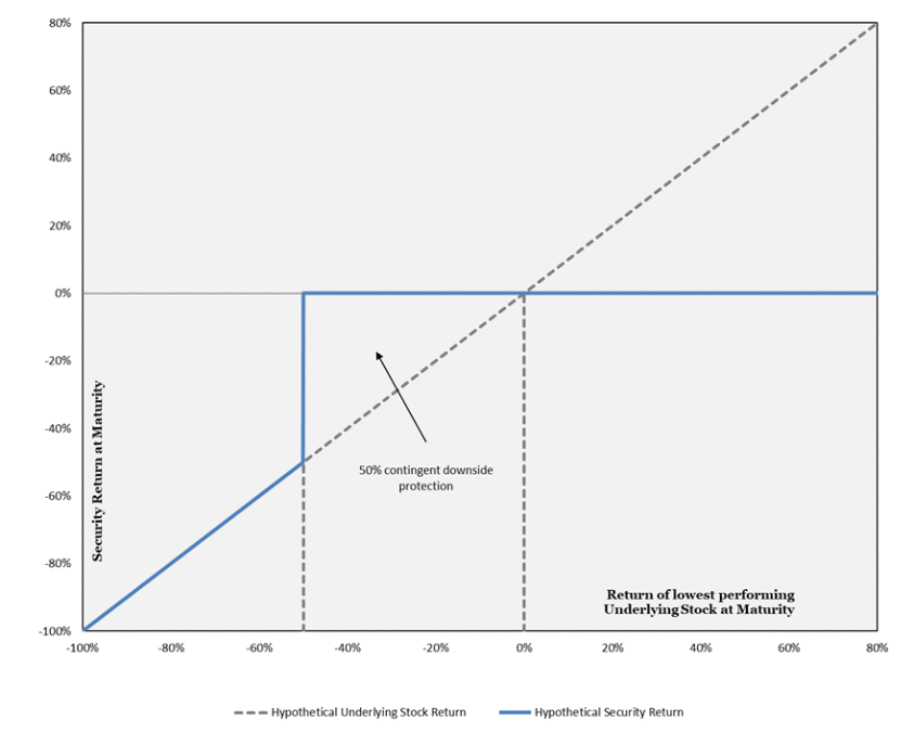 Any return on the securities will be limited to the sum of your contingent coupon payments, if any. You will not participate in any appreciation of any Underlying Stock, but you will have full downside exposure to the lowest performing Underlying Stock on the final calculation day if the ending price of that Underlying Stock is less than its downside threshold price.