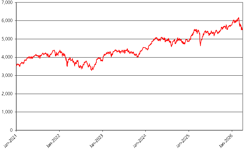 The following graph sets forth daily closing levels of the Index for the period from January 1, 2021 to March 31, 2026. The closing level on March 31, 2026 was 5,569.73. The historical performance of the Index should not be taken as an indication of the future performance of the Index during the term of the securities.