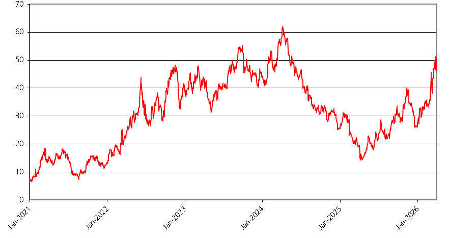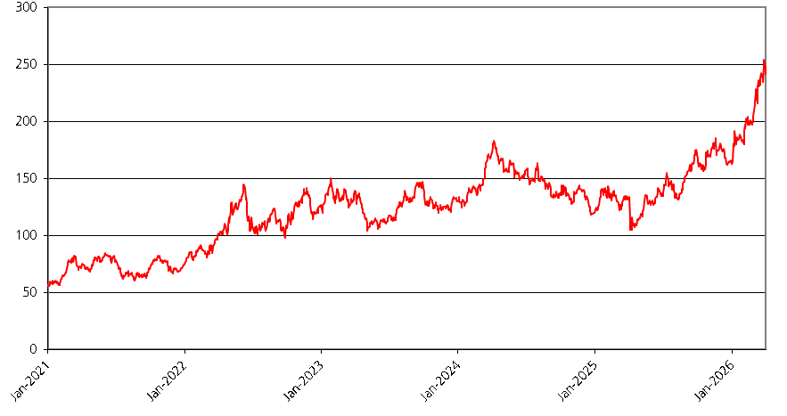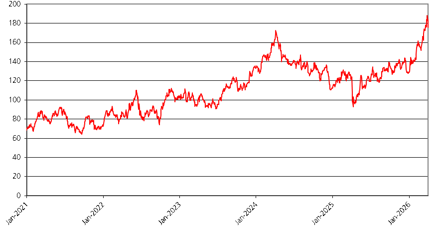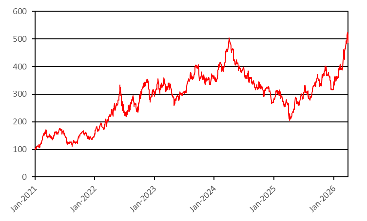 We obtained the information regarding the historical performance of the Basket Component in the graph below from Bloomberg, without independent review or verification. The graph below illustrates the performance of the Basket Component from January 1, 2021 through April 1, 2026.