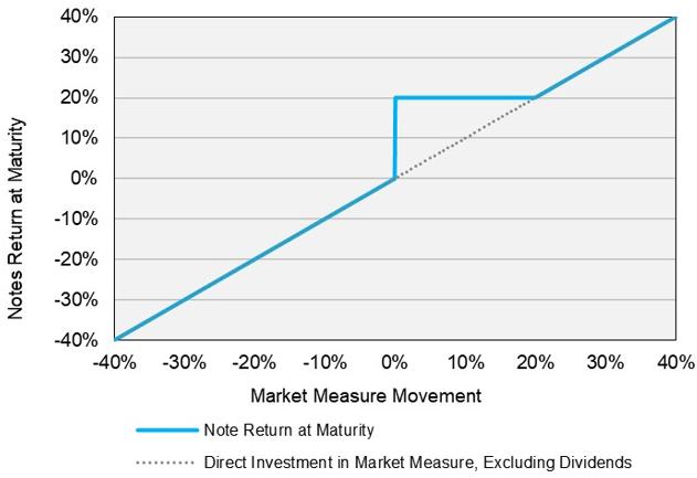●If the Market Measure is flat or increases up to the Step Up Value, a return equal to the Step Up Payment ●If the Market Measure increases above the Step Up Value, a return equal to the percentage increase in the Market Measure ●1-to-1 downside exposure to decreases in the Market Measure, with up to 100.00% of your principal at risk |