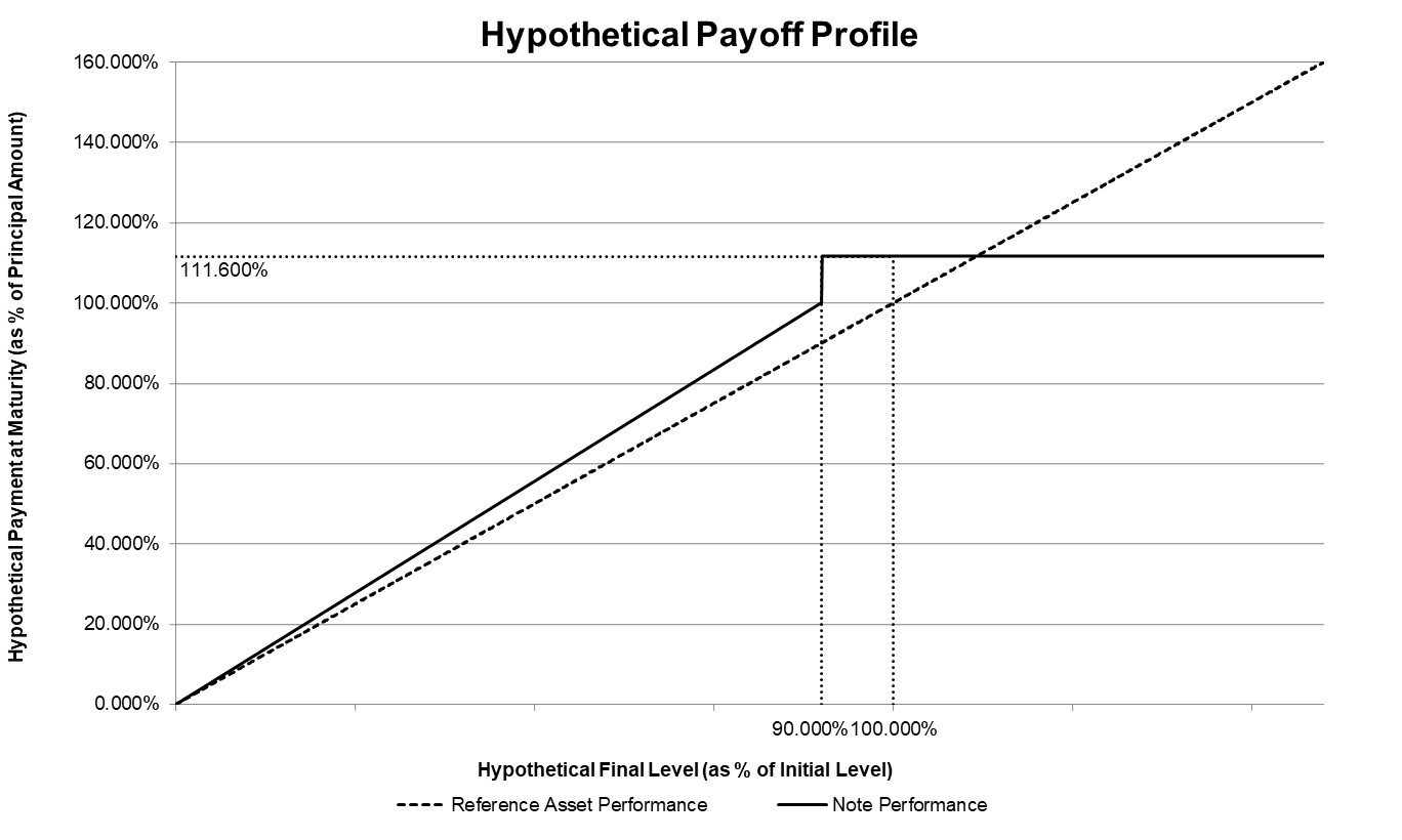 ●if the final level is less than the initial level by more than 10.00% (the reference asset return is negative and is less than -10.00%), you will receive an amount in cash equal to the sum of (i) $1,000 plus (ii) the product of (a) $1,000 times (b) the buffer rate of approximately 111.11% times (c) the sum of the reference asset return plus 10.00%.
