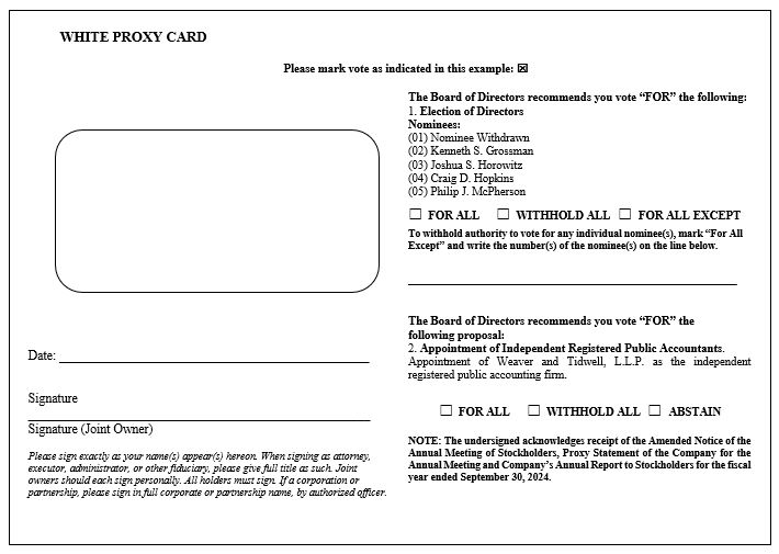 PROPOSAL NO. 2 RATIFICATION OF THE APPOINTMENT OF Weaver and Tidwell, L.L.P. AS THE COMPANY’S INDEPENDENT REGISTERED PUBLIC ACCOUNTING FIRM FOR THE FISCAL YEAR ENDING SEPTEMBER 30, 2025