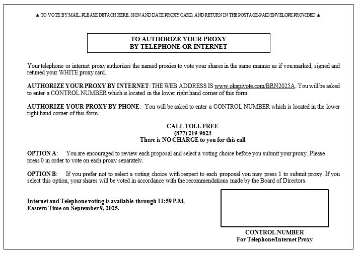 available at http://www.okapivote.com/BRN2025AGM, on our website at http://www.brninc.com under the “Investors” and “SEC Filings” tabs and on the SEC’s website (http://www.sec.gov).