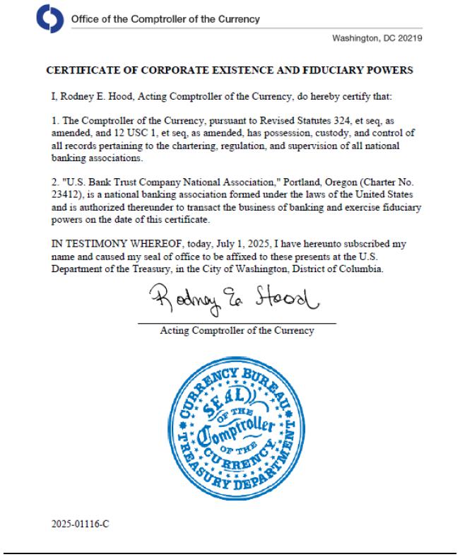 In accordance with Section 321(b) of the Trust Indenture Act of 1939, the undersigned, U.S. BANK TRUST COMPANY, NATIONAL ASSOCIATION hereby consents that reports of examination of the undersigned by Federal, State, Territorial or District authorities may be furnished by such authorities to the Securities and Exchange Commission upon its request therefor.