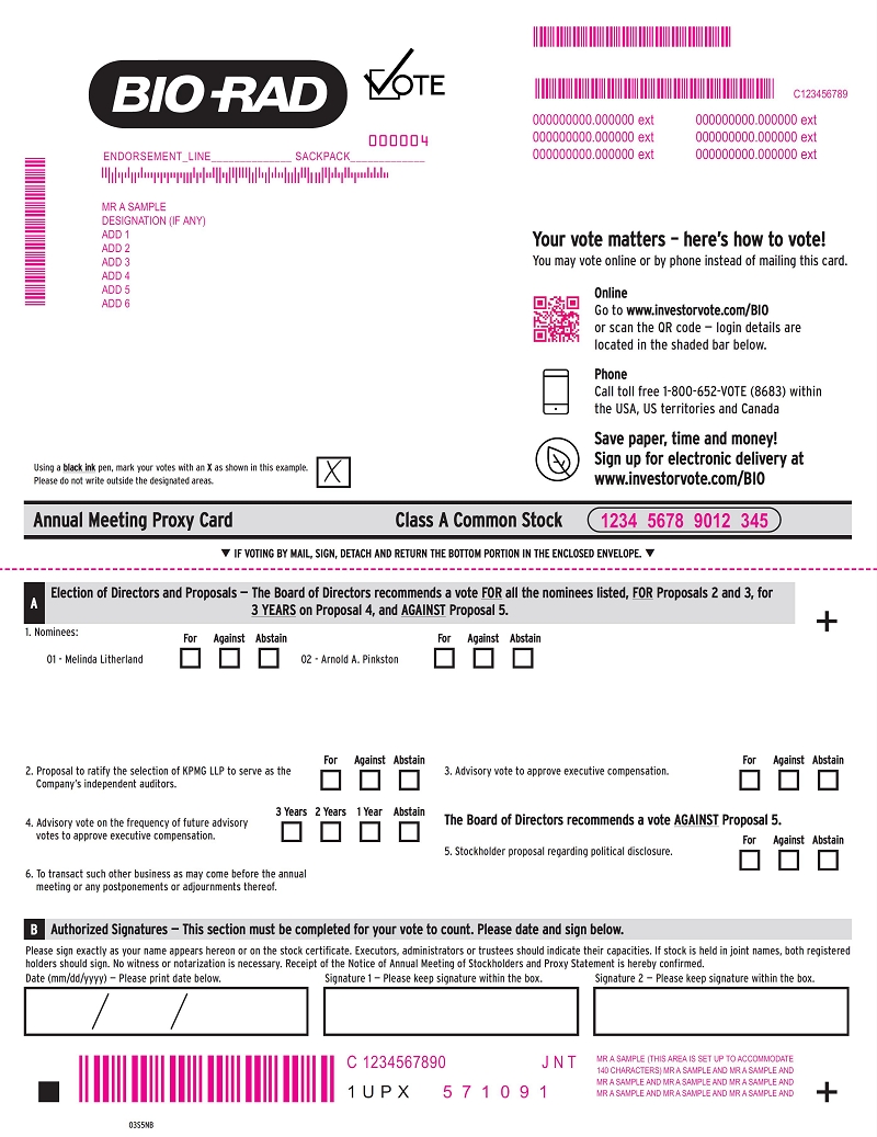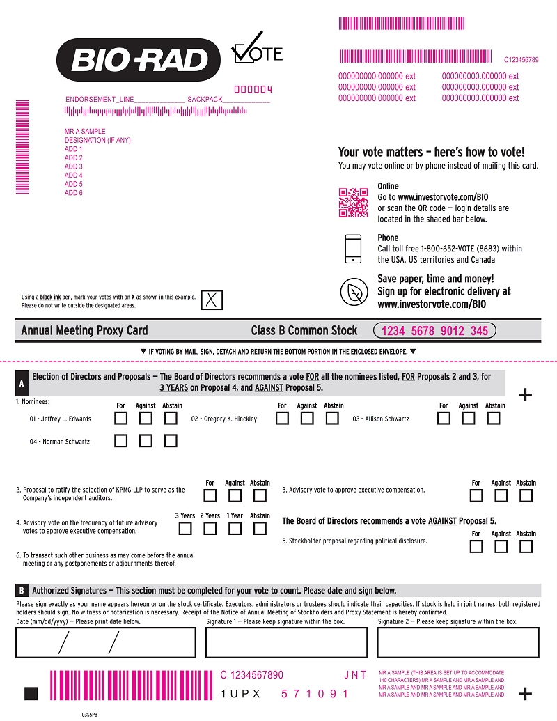 The proxy statement and annual report of Bio-Rad Laboratories, Inc. are available at www.bio-radproxy.com.