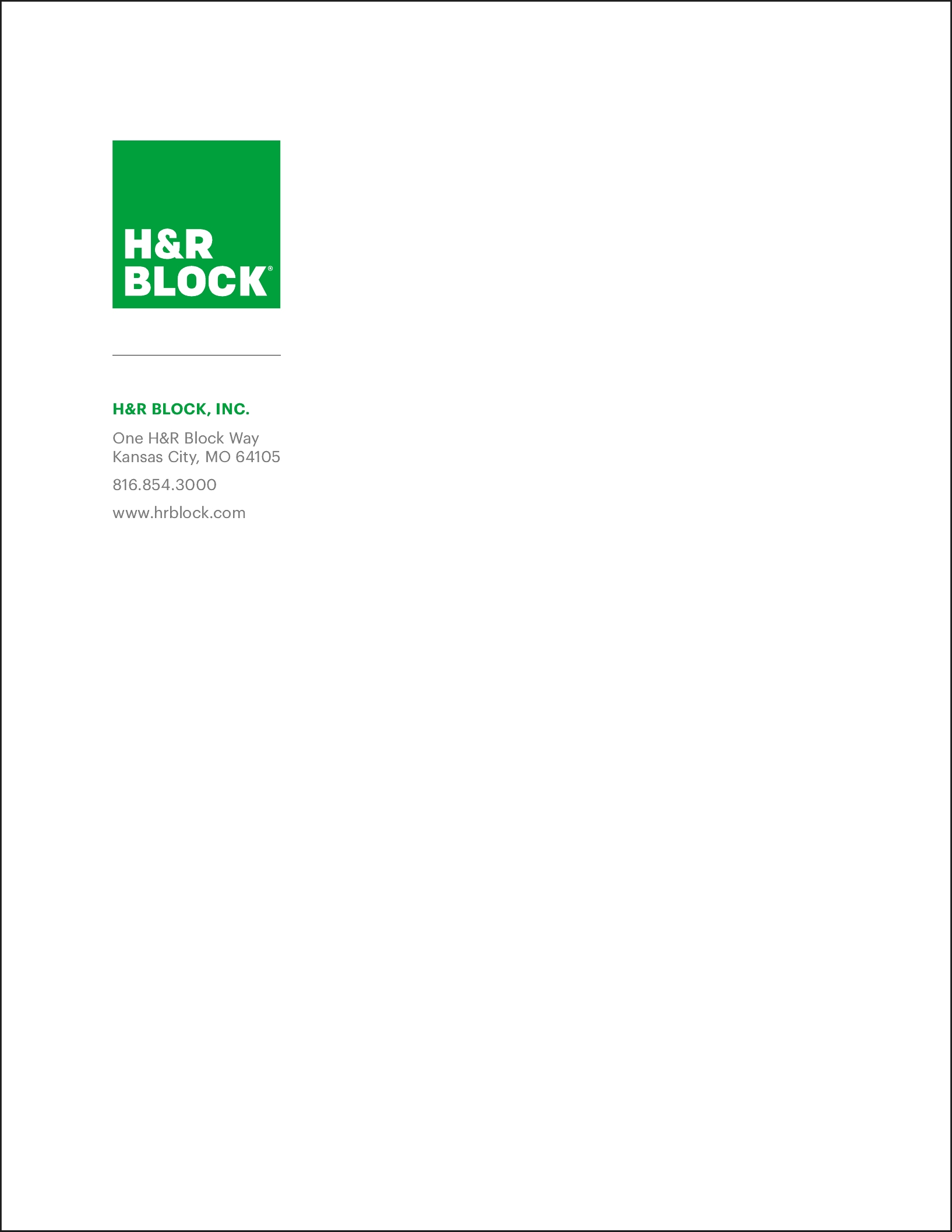 As permitted by the SEC, we are delivering only one copy of this proxy statement to shareholders residing at the same address, unless the shareholders have notified us of their desire to receive multiple copies of the proxy statement. This practice is known as householding. The Company will promptly deliver, upon request, a separate copy of the proxy statement to any shareholder residing at an address to which only one copy was mailed. Requests for additional copies for the current year or future years should be directed to the Corporate Secretary, H&R Block, Inc., One H&R Block Way, Kansas City, Missouri 64105, or by telephone at (816) 854-4288.