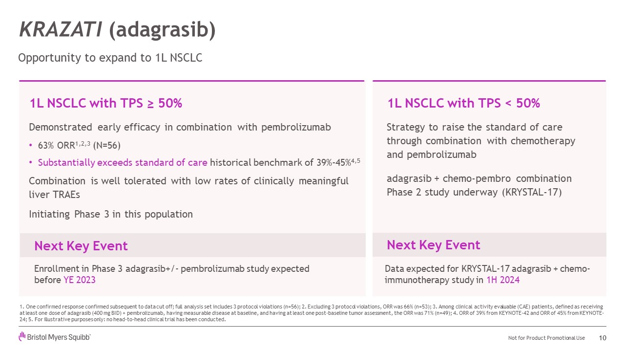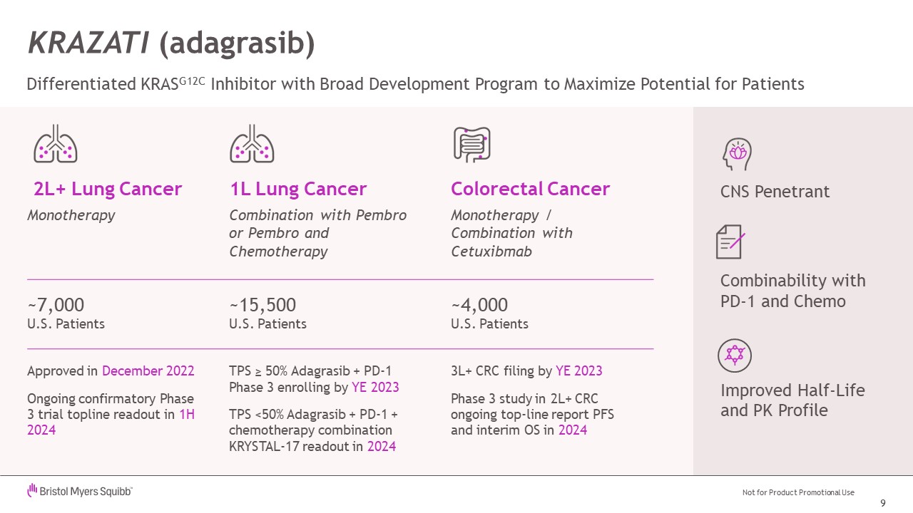 the potential to change the standard of care in multiple cancers, both as standalone therapies and in combination with BMS’s existing assets Key Assets KRAZATI (adagrasib) Commercialized Lung Cancer Medicine with Further Growth Potential LUNG