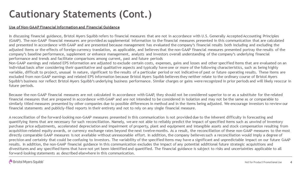 Information and Financial Guidance In discussing financial guidance, Bristol Myers Squibb refers to financial measures that are not in accordance with U.S. Generally Accepted