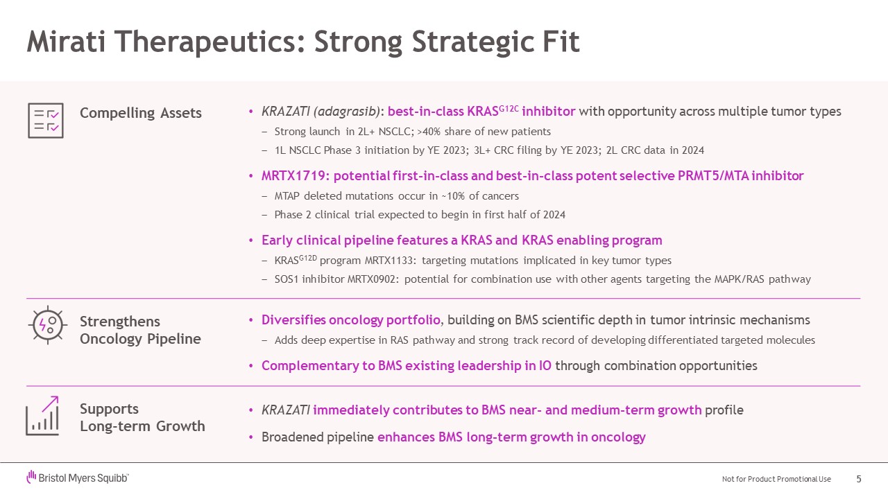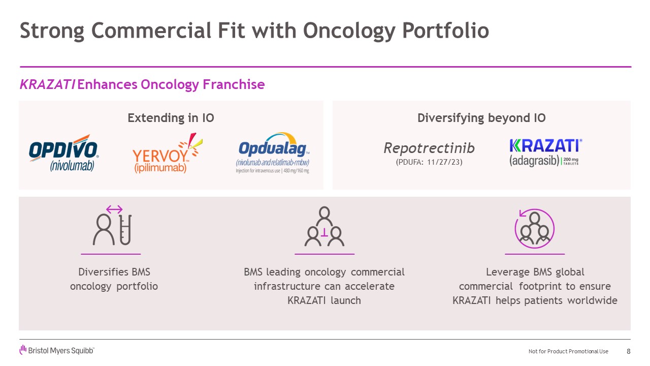 Squibb’s portfolio and innovative pipeline and represent an attractive opportunity to grow Bristol Myers Squibb’s oncology franchise. Through this acquisition, Bristol Myers Squibb will add KRAZATI, an