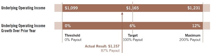 | (1) | Reflects the originally reported growth in “underlying operating income” over the past five fiscal years. “Underlying operating income” is not derived in accordance with U.S. generally accepted accounting principles (GAAP). The “underlying operating income” growth rates for fiscal years 2015 and 2018 were not retrospectively adjusted to reflect the impact from the adoption of the Accounting Standards Update 2017-07 (related to pension), which we adopted effective May 1, 2018, and other reclassified expenses related to certain marketing research and promotional agency costs. The impact of these changes, which had no effect on net income, was not material. The long-term incentive compensation related to those fiscal years was also not retrospectively adjusted as a result. Please refer to Appendix A of this Proxy Statement for additional information. |