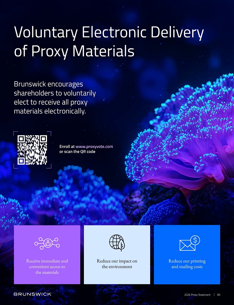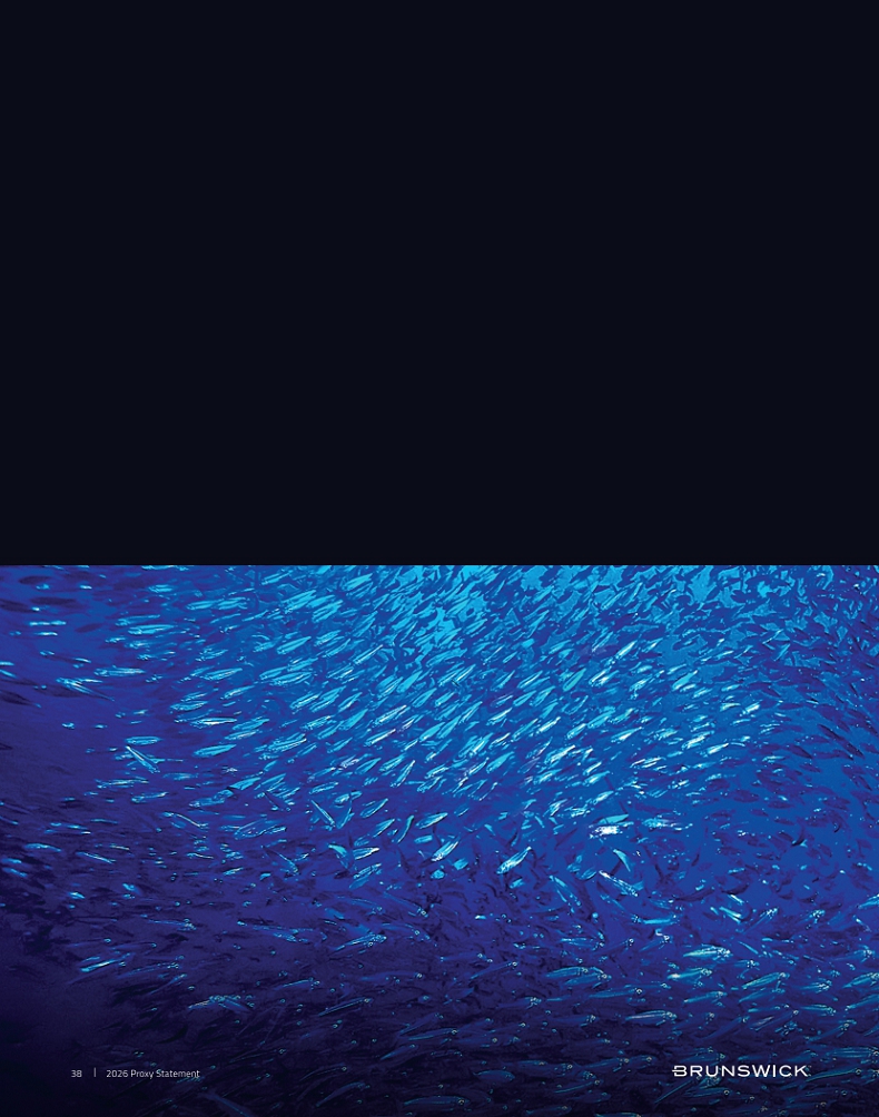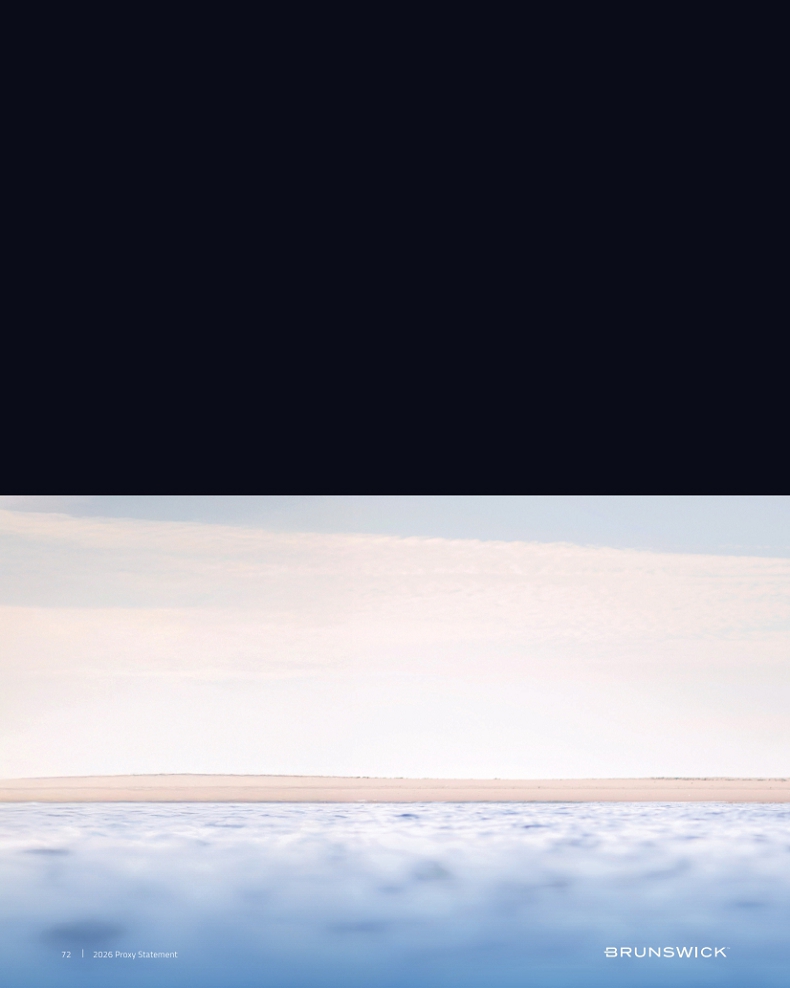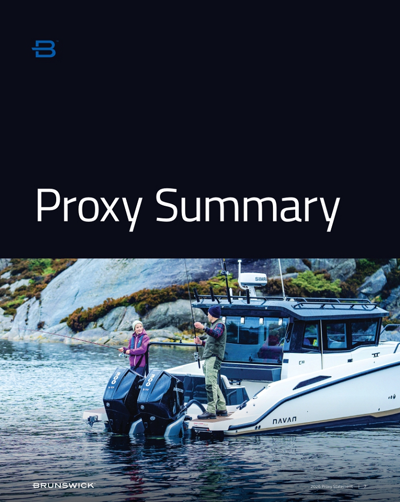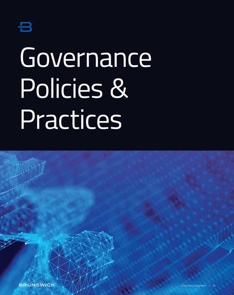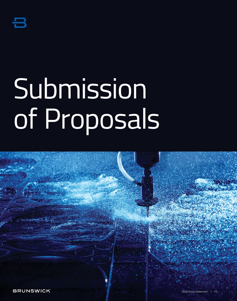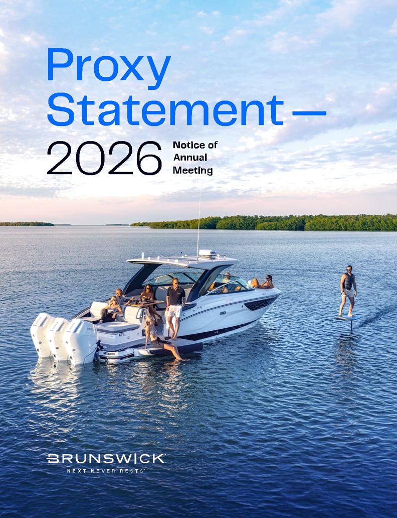 Certain statements in this Proxy Statement are forward-looking statements as defined in the Private Securities Litigation Reform Act of 1995. Forward-looking statements are based on current expectations, estimates, and projections and by their nature address matters that are, to different degrees, uncertain. Words such as “may,” “should,” “expect,” “believe,” “will,” and similar expressions are intended to identify forward-looking statements. Forward-looking statements are not guarantees of future performance and involve certain risks that may cause actual results to differ materially from expectations as of the date of this Proxy Statement. These risks include, but are not limited to, those set forth in Brunswick’s Annual Report on Form 10-K for the fiscal year ended December 31, 2025 and subsequent reports filed with the Securities and Exchange Commission. Information available on our website is not incorporated into this Proxy Statement and any references to website locations are for informational purposes only.