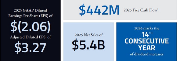 | Despite the tariff-related shocks in the second quarter of 2025, we delivered $5.4 billion in net sales for the full year—a 2% increase over last year. This marked our first net sales growth in three years and resulted in outstanding free cash flow of $442 million.
