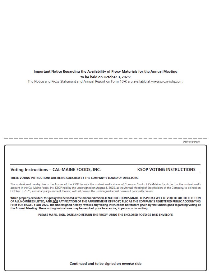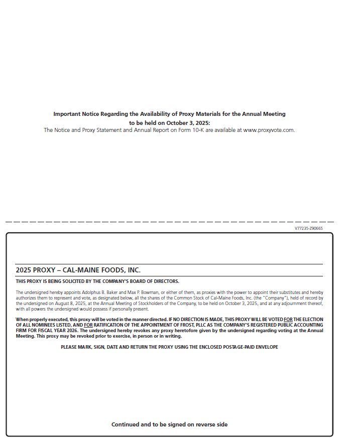 Stockholders of record should contact the Company’s Secretary in writing or by telephone at Cal-Maine Foods, Inc., ATTN: Max P. Bowman, Secretary, 1052 Highland Colony Parkway, Suite 200, Ridgeland, Mississippi 39157, telephone number (601)