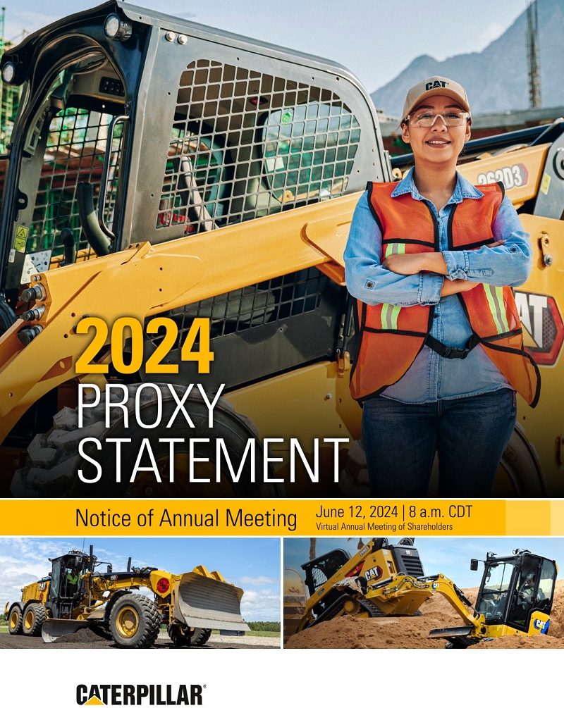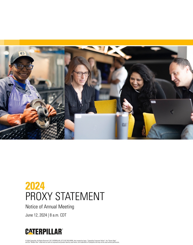 On behalf of the board of directors and our Caterpillar team, I cordially invite you to attend the Annual Meeting of Shareholders on June 12, 2024, at 8 a.m. Central Time. This year’s meeting will be held virtually.