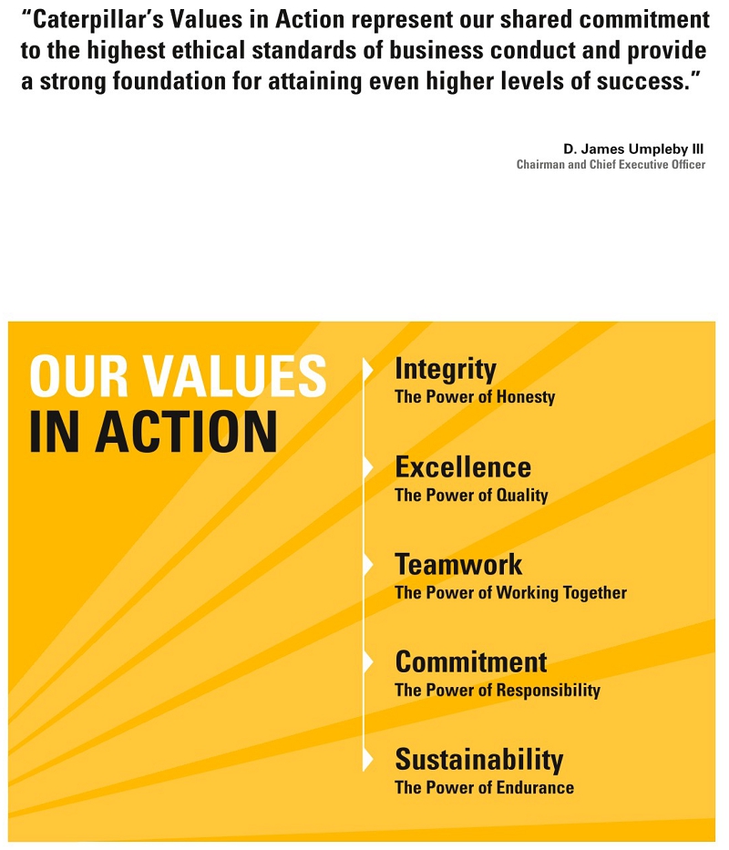 I write to also express my sincere gratitude to Caterpillar’s employees and management, who continue to drive sustained growth across the enterprise. You are at the center of the Company’s success, and your dedication to serving our customers, implementing our strategy and adhering to our values is significant and impressive.