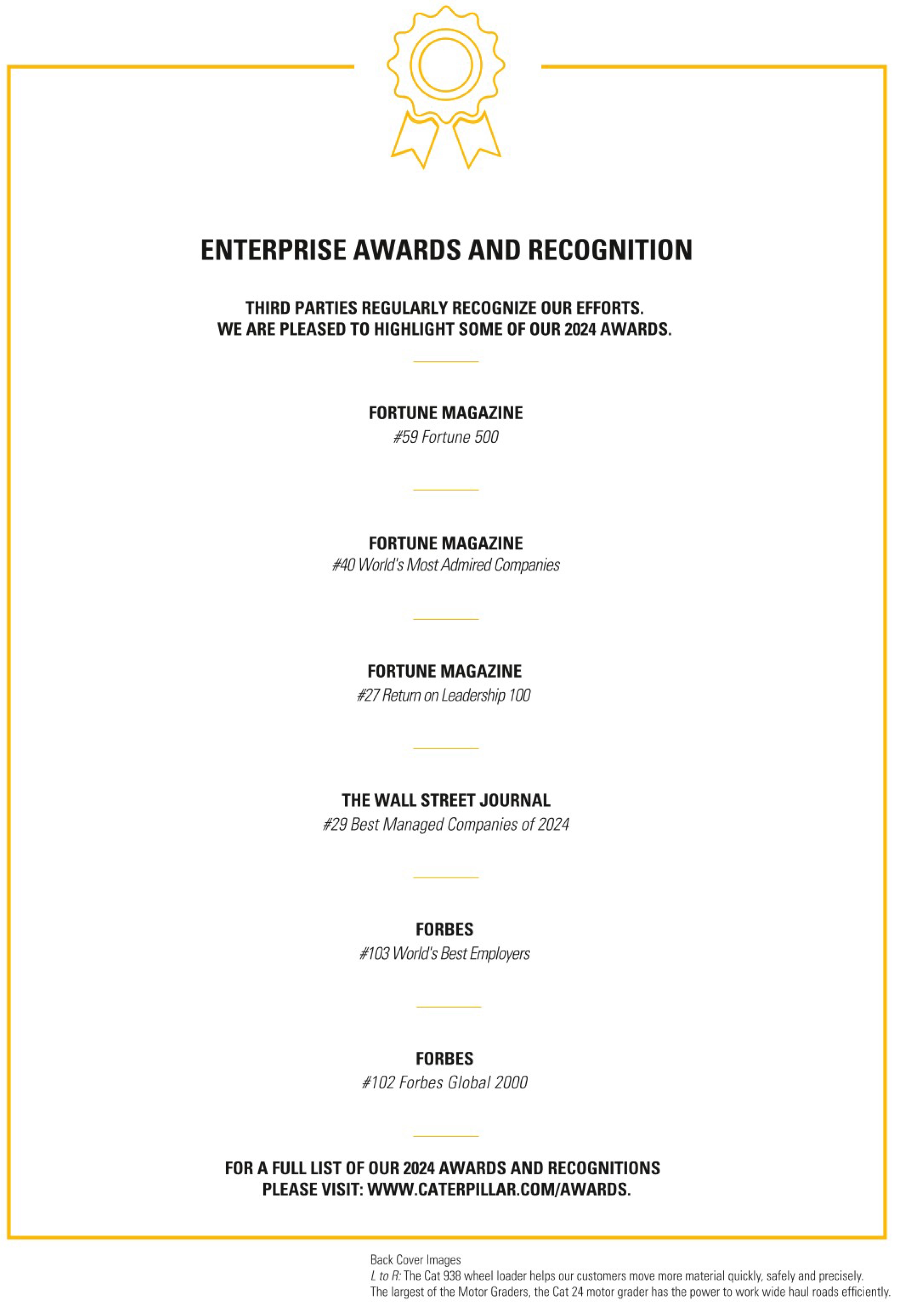 Caterpillar is helping customers build a better, more sustainable world. To learn more, visit www.caterpillar.com/reports to read our latest Annual Report and Sustainability Report.