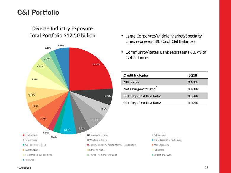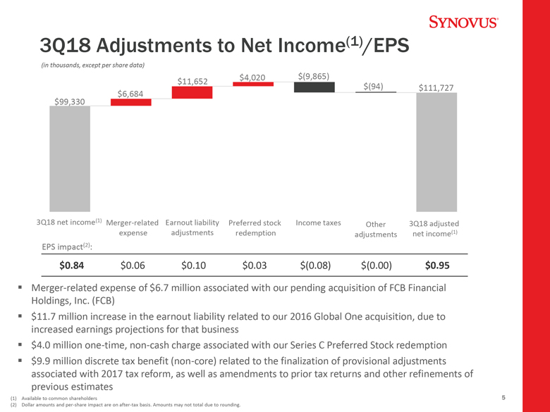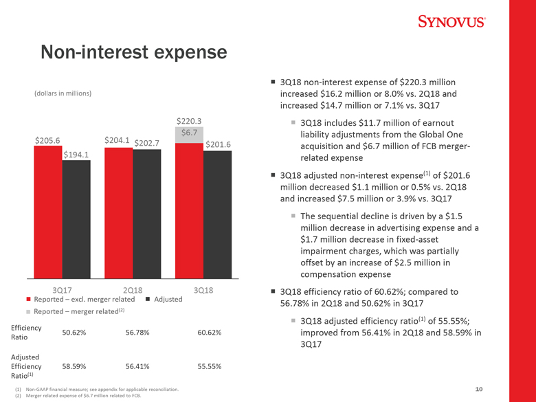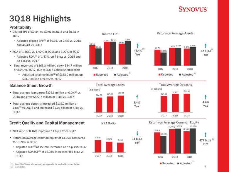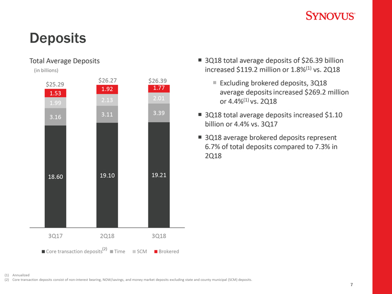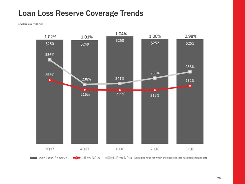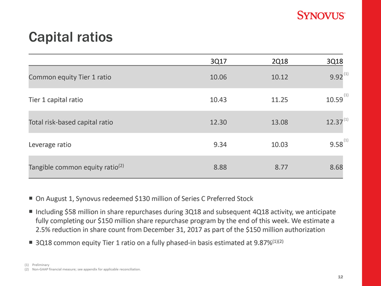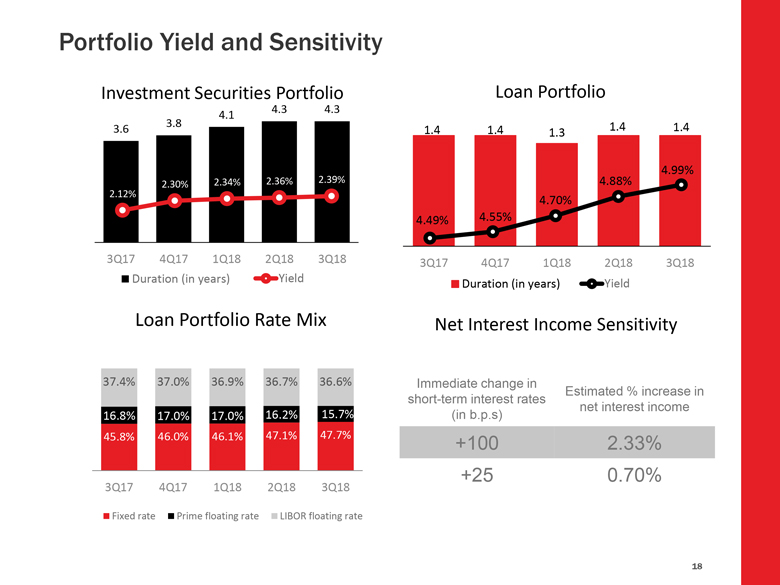 Non-GAAP Financial Measures, continued 33 (dollars in thousands) 3Q17 2Q18 3Q18 Total average deposits $25,286,919 26,268,074 26,387,312 Subtract: Average brokered deposits (1,530,889) (1,922,917) (1,772,977) Average core deposits $23,756,030 24,345,157 24,614,335 (dollars in thousands) 3Q17 4Q17 1Q18 2Q18 3Q18 Total assets 31,642,123 31,221,837 31,501,028 31,740,305 32,075,120 Subtract: Goodwill (57,315) (57,315) (57,315) (57,315) (57,315) Subtract: Other intangible assets, net (11,548) (11,254) (10,750) (10,458) (10,166) Tangible assets $31,573,260 $31,153,268 $31,432,963 $31,672,532 $32,007,639 Total shareholders’ equity $2,997,078 $2,961,566 $2,956,495 3,167,694 3,040,073 Subtract: Goodwill (57,315) (57,315) (57,315) (57,315) (57,315) Subtract: Other intangible assets, net (11,548) (11,254) (10,750) (10,458) (10,166) Subtract: Preferred Sock (125,980) (125,980) (125,980) (321,118) (195,138) Tangible common equity $2,802,235 $2,767,017 $2,762,450 $2,778,803 $2,777,454 Total shareholders’ equity to total assets ratio 9.47% 9.49% 9.39% 9.98% 9.48% Tangible Common Equity ratio 8.88% 8.88% 8.79% 8.77% 8.68% (dollars in thousands) 3Q18 Common equity Tier 1 (CET1) $2,846,417 Subtract: Adjustment related to capital components (2,785) Common equity Tier 1 (fully phased-in) $2,843,632 Total risk-weighted assets $28,701,637 Total risk-weighted assets (fully phased-in) $28,808,199 Common equity Tier 1 (CET1) ratio 9.92% Common equity Tier 1 (CET1) ratio (fully phased-in) 9.87%