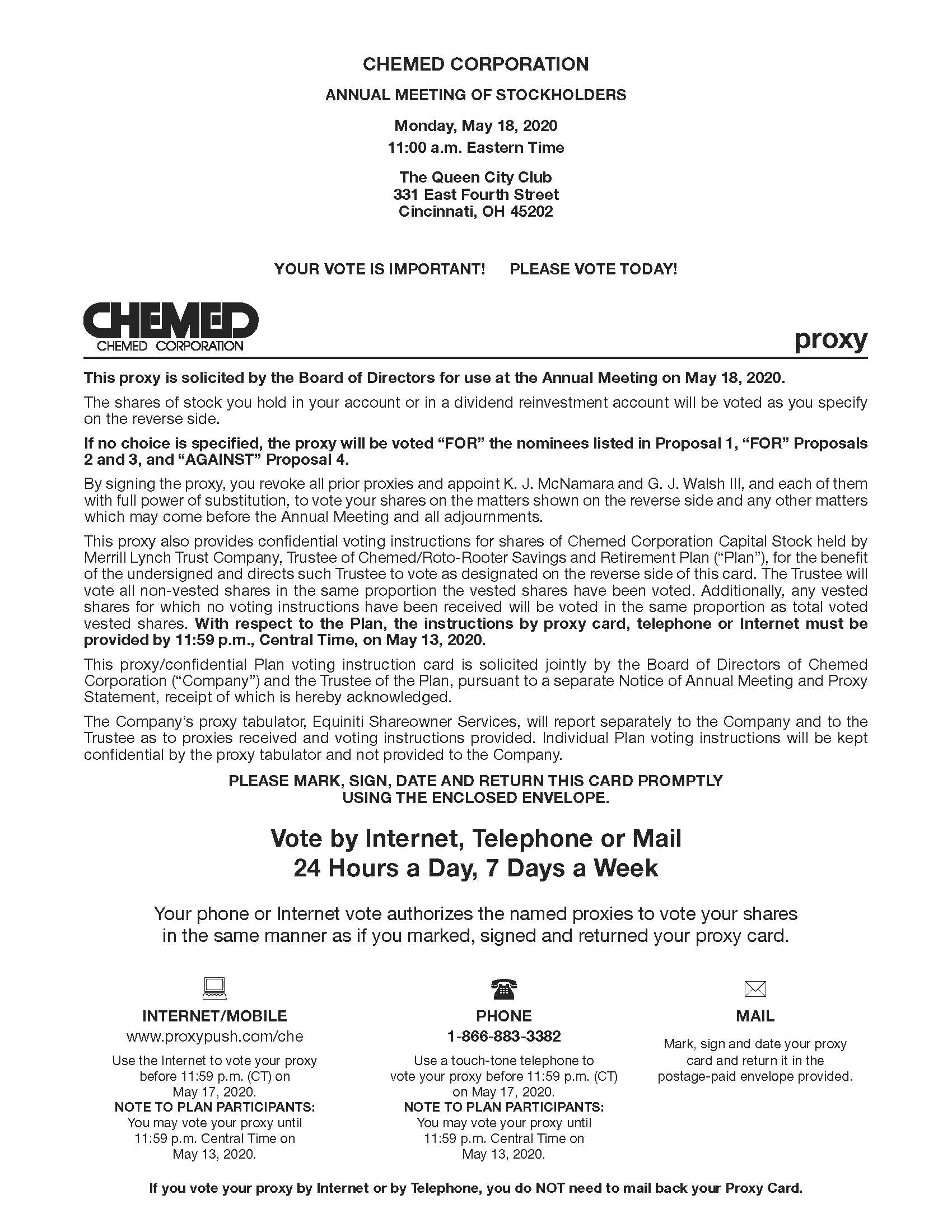 guidance. Please monitor our website at ir.chemed.com for updated information. As always, we encourage you to vote your shares prior to the annual meeting.